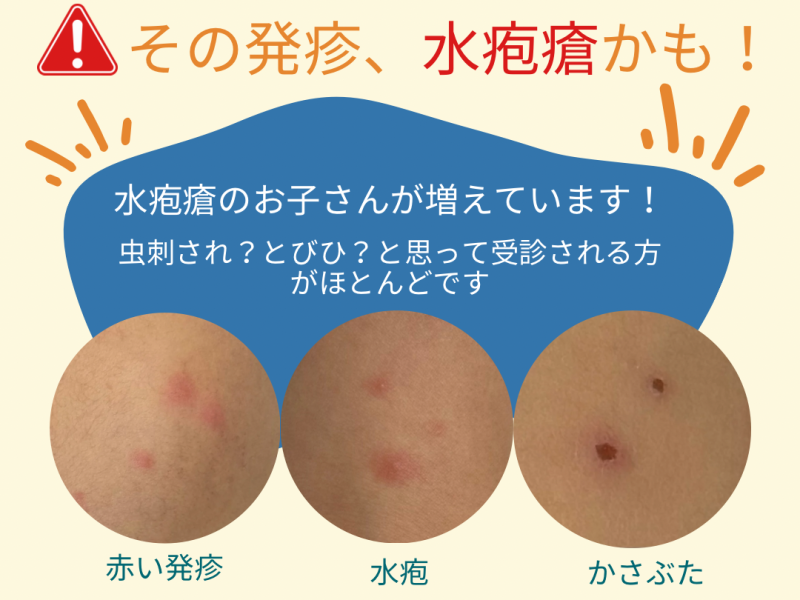 最近、虫刺されを搔きこわし、とびひになってかかりつけ医を受診をすると、実は水ぼうそうだったということを耳にすることがありました。