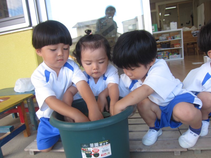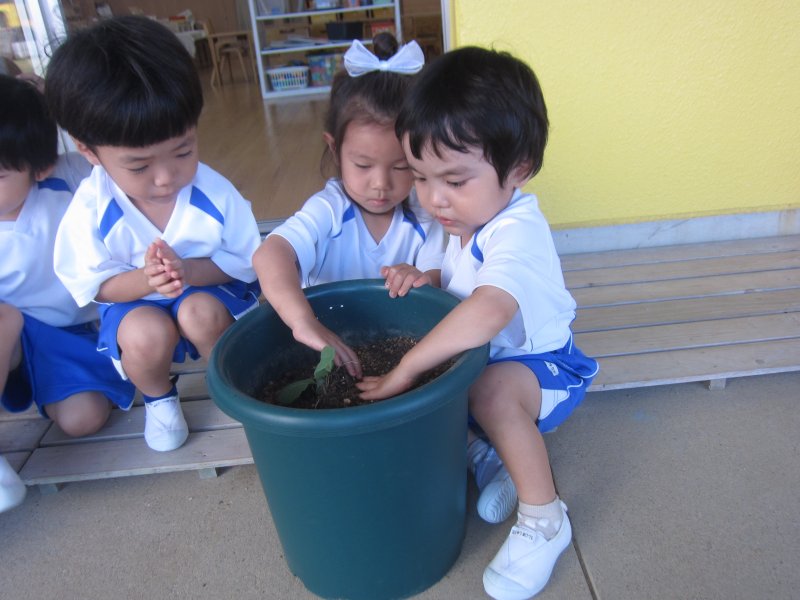 植えたあとはみんなで、「おおきくなあれ」と水やりをして、生長を願いましたよ😚