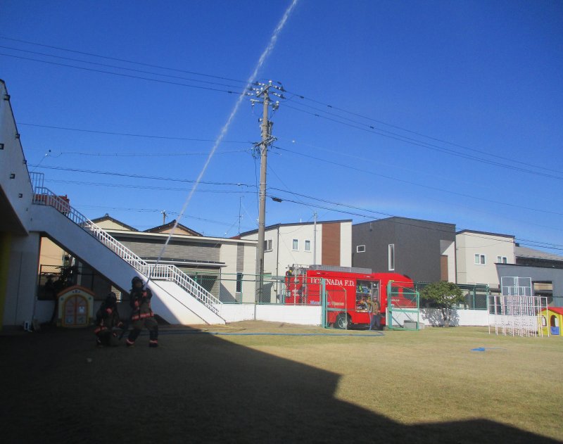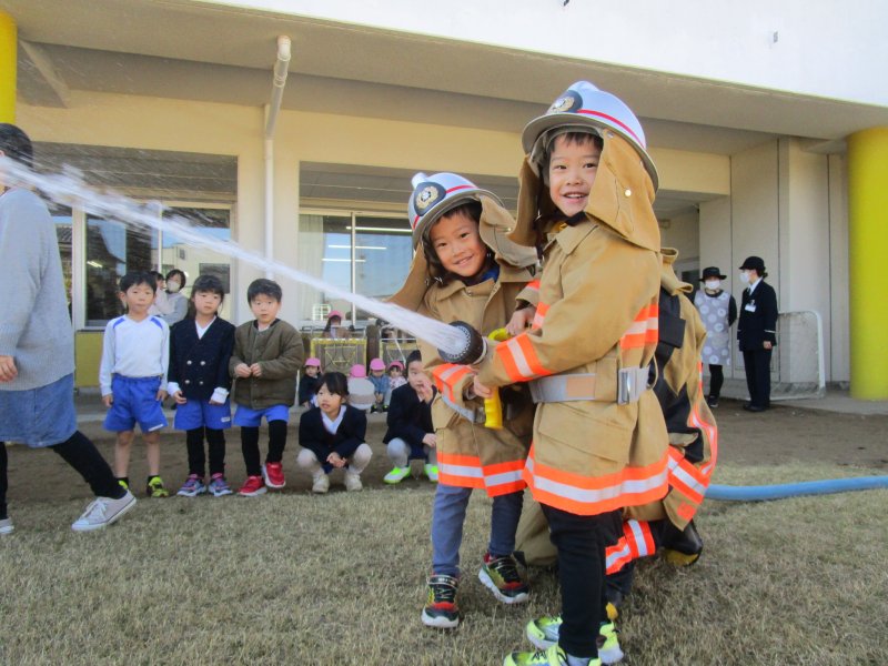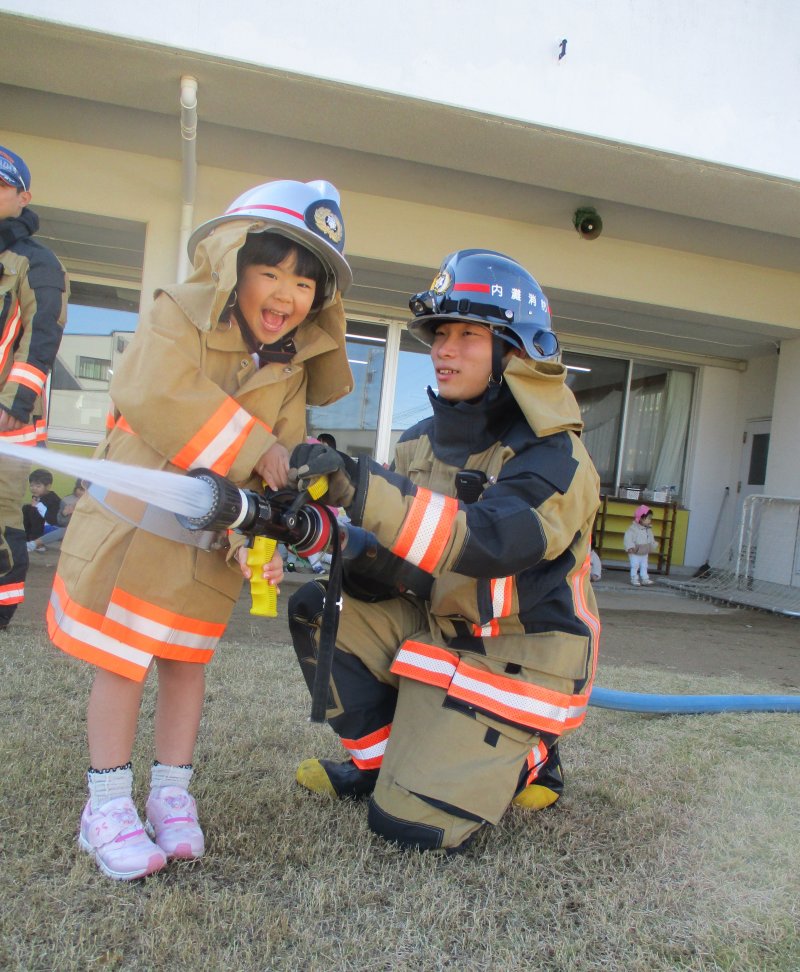 0歳児1歳児2歳児3歳児4歳児5歳児さくらすみれたんぽぽ・つくしちゅーりっぷつくしひまわり行事11月20日(木) 全園児 消防訓練2025.11.20今日は消防署立ち合いによる避難訓練がありました。消防士さんから「おかしもち」のお約束を聞いた後、年長、年中児は放水体験もしました。その後はホールで紙芝居やDVDも見ました。また、お家でお話を聞いてみてくださいね。